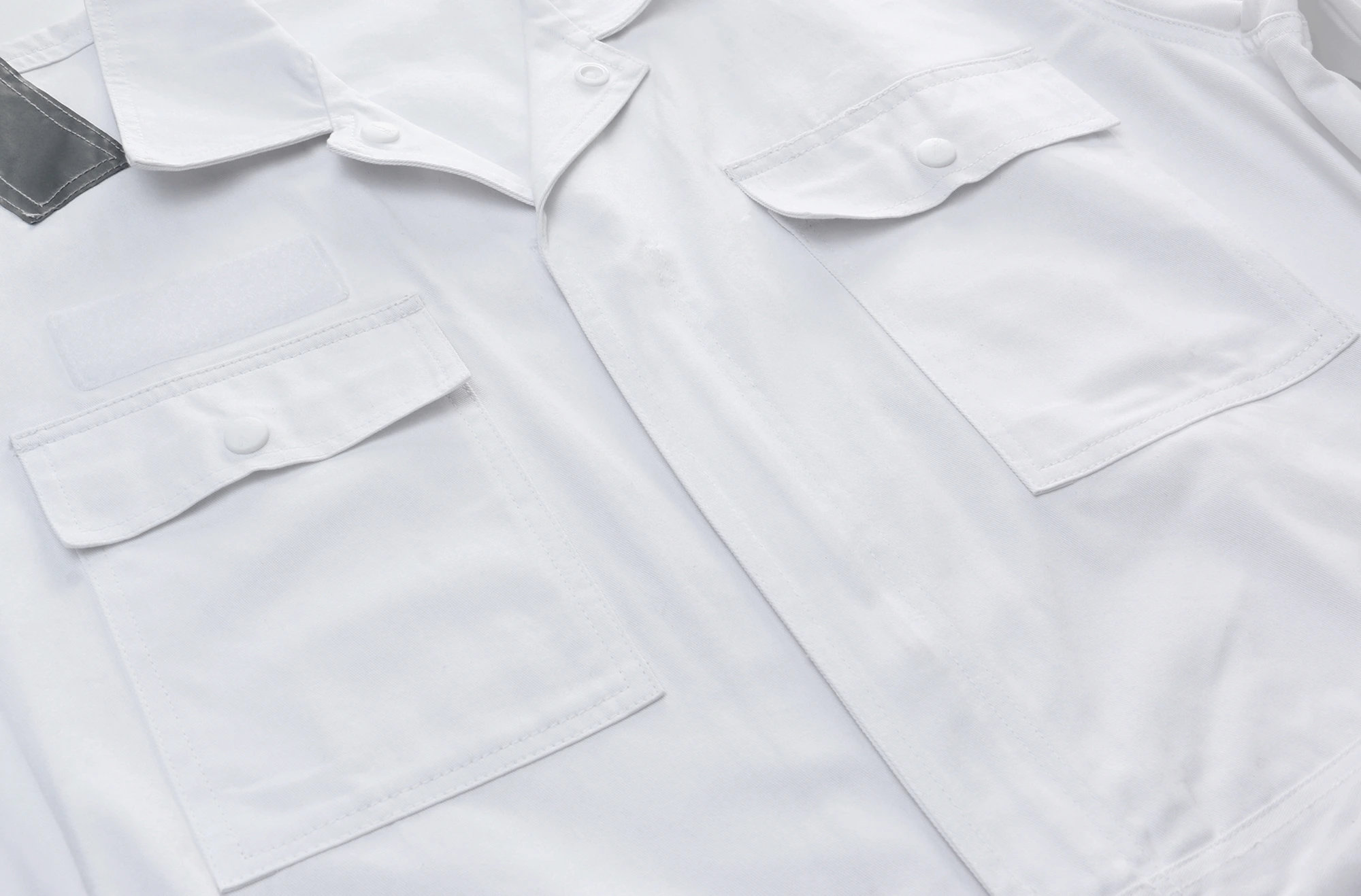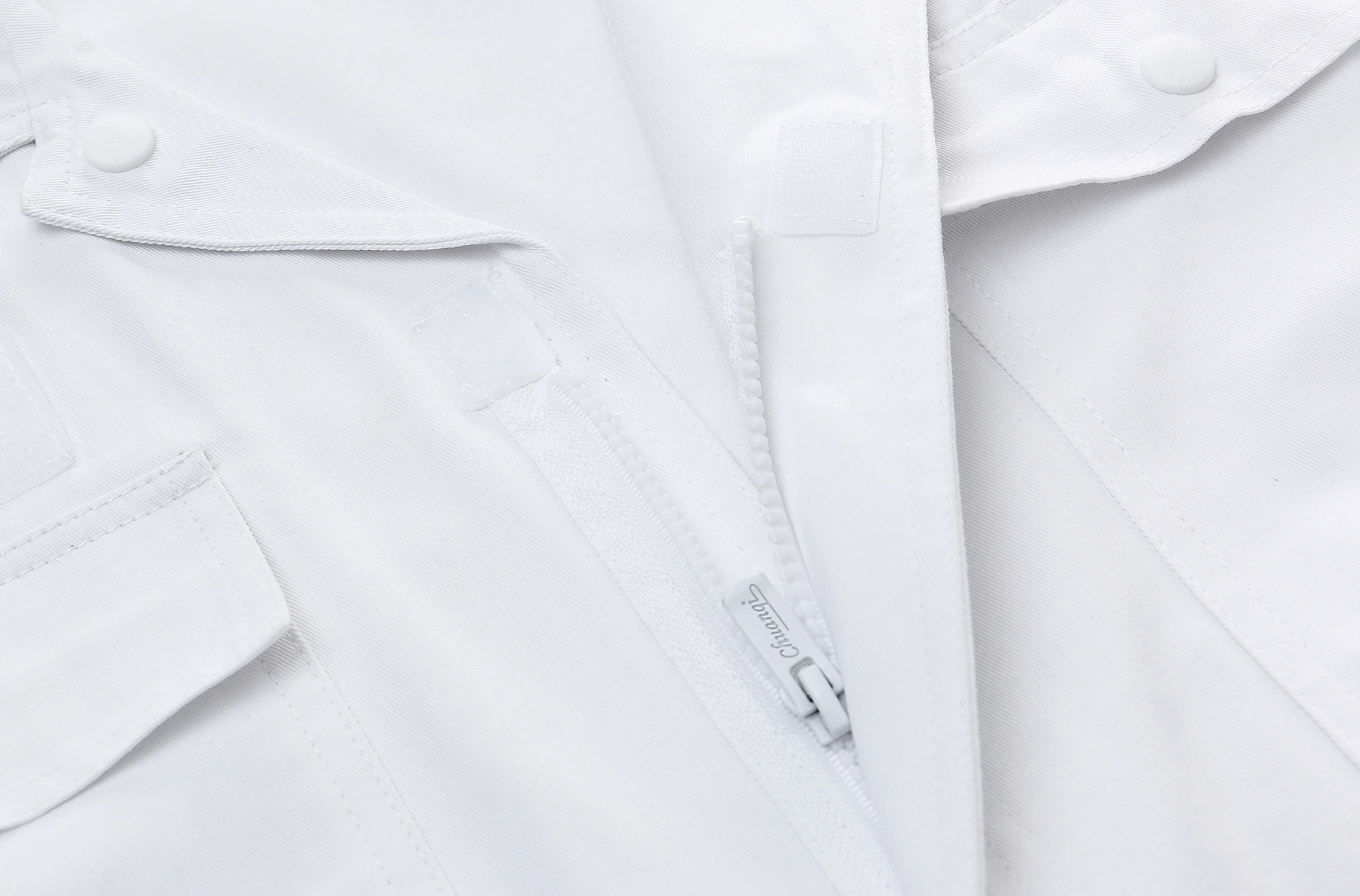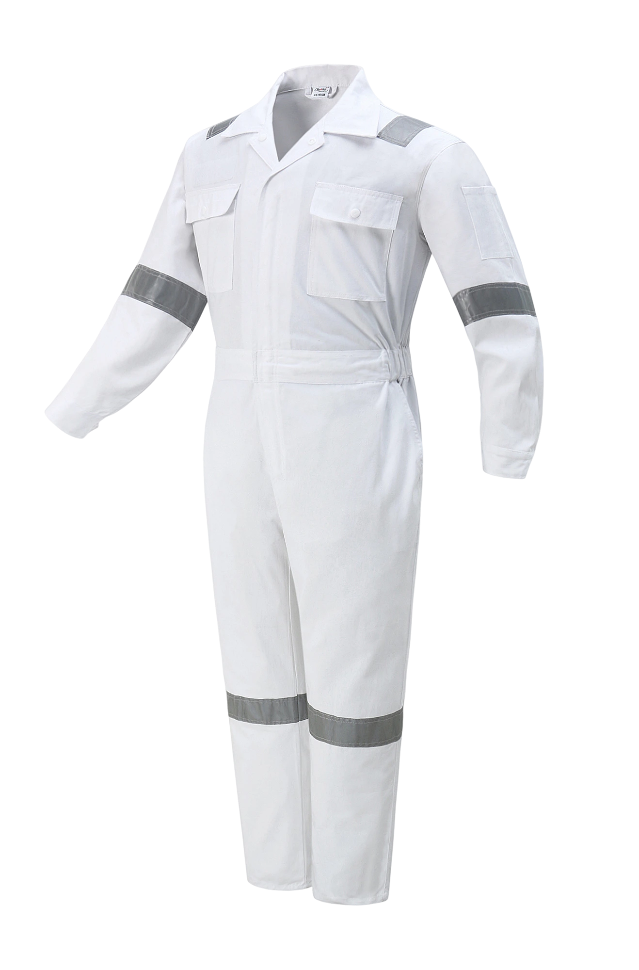 这款纯棉连体工作服完美契合海上作业的需求,适合集装箱船、散货船、杂货船等环境;版型运用人体工效学设计,改善服装内部空间结构,蹲起攀爬灵活更有利于人的四肢运动,大大降低劳动中的疲惫感,提升工作效率,同时着装更美观合体更舒适有型;面料采用长绒棉纤维,通过OEKO-TEX STANDARD 100环保认证,抗起球、快速吸湿、预缩水处理,适合船员长时间穿着;外观大驳领设计,彰显端庄大气风范,反光条设计增强了工作场所的可见度,确保安全。工作服还配备8个口袋(含手机袋)、双向5号树脂拉链,使用活动自如。