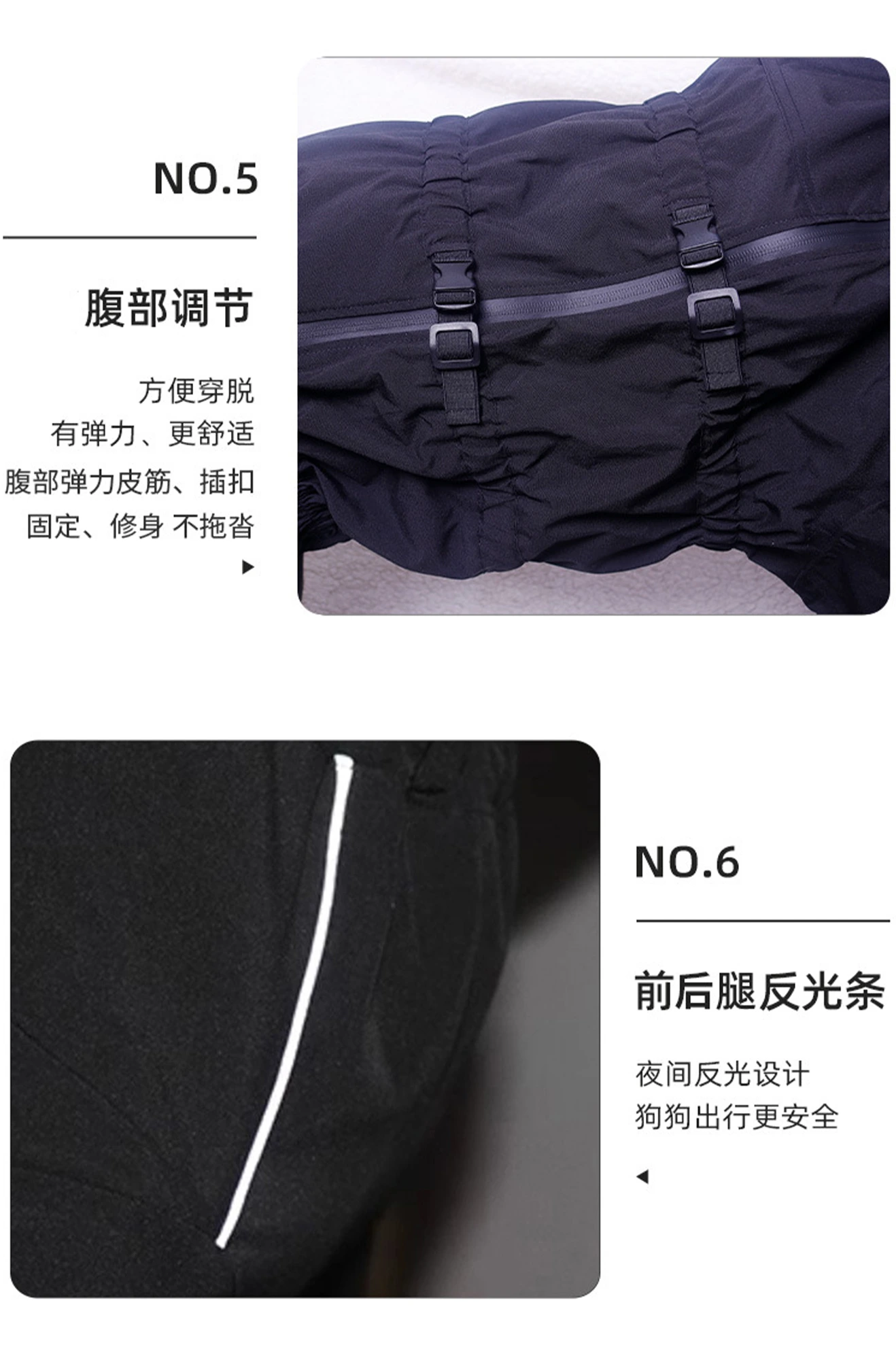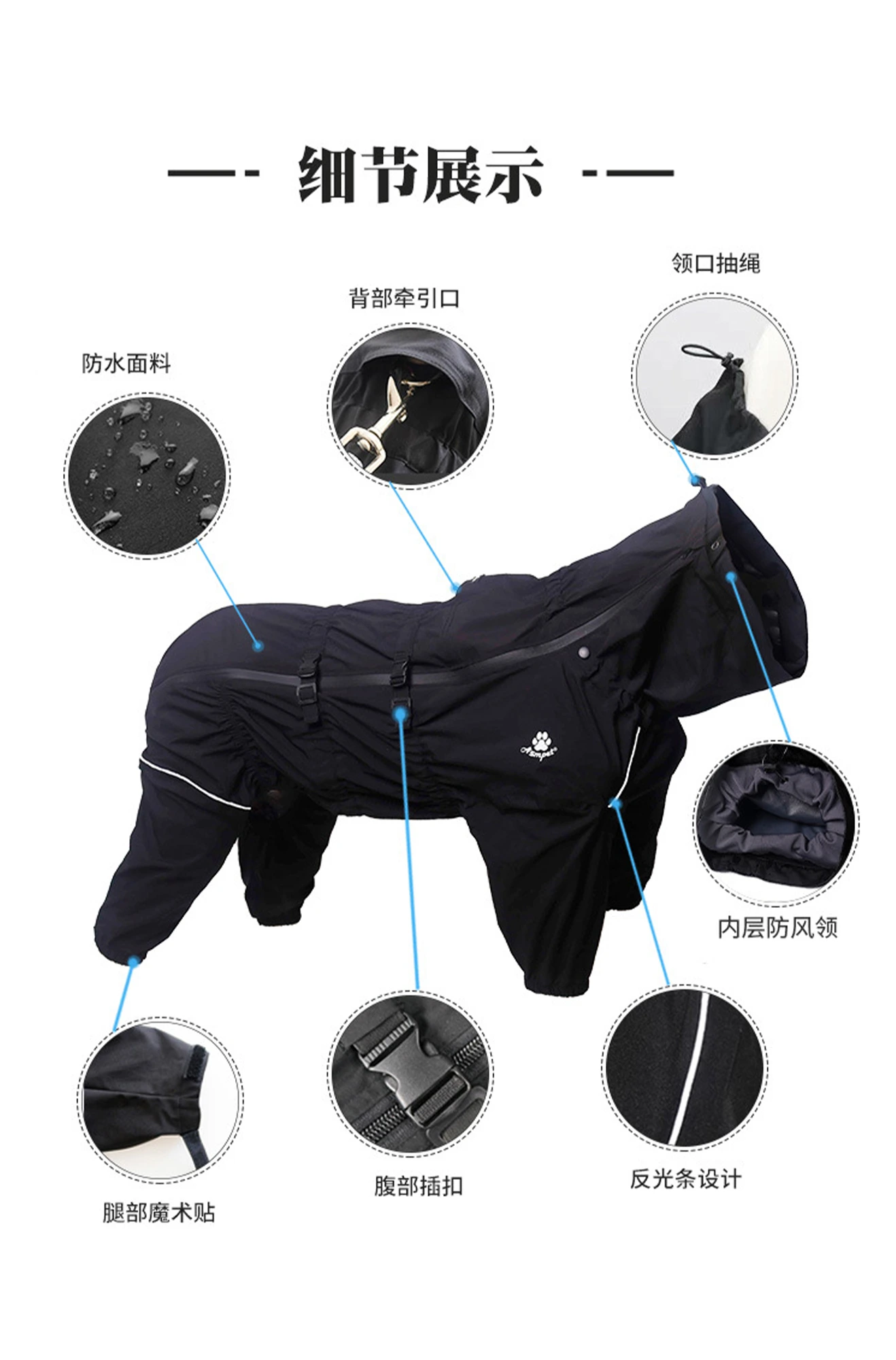 | 辅料 | 防水拉链、罗纹、亮银反光条、树脂插口 |